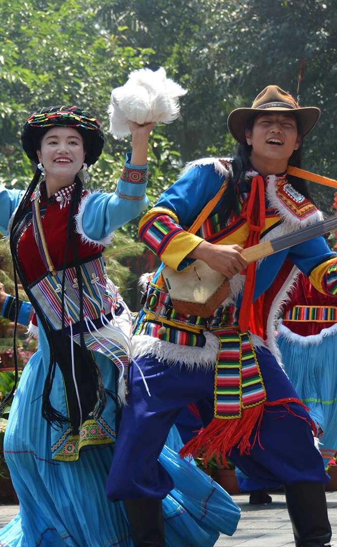 傣族人口約107萬人,主要分布在云南的德宏傣族景頗族自治州、西雙版納傣族自治州及瀾滄江流域的河谷壩子區(qū)域。傣族寨是進入民族村的第一個村寨,占地面積27畝,三面環(huán)水,綠樹掩映。一幢幢“干欄式”傣家竹樓,通過蜿延的紅砂石小徑聯(lián)向肅穆的緬寺。巍峨壯觀的白塔,精巧玲瓏的風(fēng)雨橋,以及風(fēng)雨亭、水井、鐘亭等建筑充滿著傣家的濃郁風(fēng)情,是傣寨真實的民間景觀再現(xiàn)。一年一度的“潑水節(jié)”期間,這里都有活潑歡快的“象腳鼓舞...